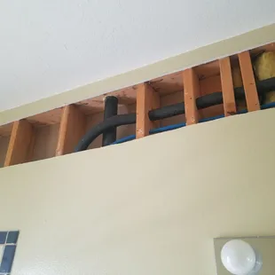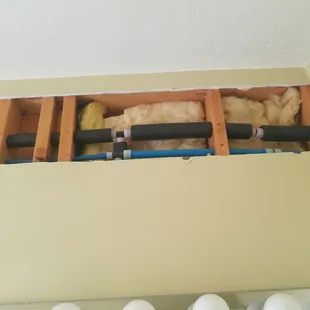I had a couple of slab leaks over a year and a half so I decided to get my house repiped above the slab. The only way to do it with a flat roof is to go through the walls and through the studs. Dimitri, the owner of this small business, did all the work himself which meant drilling all the holes through the studs, running all the pipe, insulating all the pipe, including insulating the hot water line on inside walls, And insulating some spaces between joists that never had insulation in the first place. The work was permitted and inspected and he used ball valves for shut offs instead of valves with a washer. All in all I can't say enough good things about his work and his work ethic. I took a lot of pictures I hope they can all be put on this page because the amount of work that went into this was epic. He couldn't have been nicer or more polite. A friend and colleague will come Monday and replace the drywall that was cut. His name is Dominic Moore and I highly recommend him as well because he's the one who recommended Dimitri of 3G plumbing to me. In the pictures notice the bracket that he put in the closet behind the shower. He was able to do the tie ins and drop downs without having to do anything to my tile. Excellent work. This is what happens when the work gets permitted and you use a master plumber who has a lot of experience in the field. Plus he figured out a way to go through the sides of the cabinets on the outside walls so the various cabinets and fixtures didn't have to be moved. He's also giving me a $250 credit to have my house cleaned after the project is completed. Kudos.