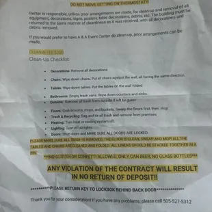Honestly, if I could give zero stars I would where do I start so much things happen it was so unprofessional. It wasn't the place itself there. I didn't like it was more so the owners on how they were handling their business number they like to change up the contract. They're not professional at all whatsoever mind you my contact information I met her in person at the hall to pay a deposit and I went to her store to pay the other part of the deposit and I reached out to a couple times for some questions I had in all that she never thought it was important to tell the customer ahead of time that at her hall they are not responsible for toilet paper and garbage bags she gave me a paper saying about the check cleaning list that's all she told me when she handed it to me So I was pretty upset because I had a pretty big wedding and there was no toilet paper and no garbage bags. I had to send someone to go get it because she did not tell me ahead of time. She literally waited two hours like I said before I was about to walk down the aisle and the second thing actually this should be the first thing she's not honest when I first met her to put down the deposit. She told me that her or her husband come in it at 12 o'clock at night take the key and it gives us a chance to come back in the morning to meet us so we could pick up And when I seen her to get the key on my wedding day, she didn't bring up nothing about that. I only had it from 12 to 12 o'clock and when I met her the day of my Wedding to get the key, she didn't tell me nothing about that. I had to make sure it was clean at night by 12 o'clock and lock up so I thought we were on what we talked about when I first met her when the deposit I want at 10:40, we started throwing all the garbage. One of my guests brought garbage bags so we threw throughout all the garbage And we swept the floor, but we didn't deep sweep or mop. We did take off all the table covers liners and chair covers. we put it all on the ground in piles like she said we stacked up all the chairs on one side of the wall we wiped down the tables and the chairs before we stacked them up on the wall and when we went back around 8:50 in the morning to deep sweep and do a deep mop, clean out two of the garbage cans because some of the guest started throwing food in there because there was no garbage bags in the garbage cans. Because she never thought it was important to tell me that big detail so they were dirty in the inside. They weren't full with stuff they just had liquid at the bottom of it. Take out the garbage in the bathroom and mop the bathroom floors as well so when we got there, they were already there setting up for a party and it caught me by surprise she came up to me and told me you guys were supposed to have his clean by last night and the keys in the drop off box and I explain to her, but that's not what you told me. I said you told me we have until the morning around 10 to to have it all clean then I started telling her her word is not true. She's a liar and she said that was in your contract and I told her it wasn't. I told her you literally tried to change the contract on me when I first gave the deposit as well. You changed it to 12 when I had my wedding scheduled at 10 to decorate, so then I asked the guy to please stop sweeping and she got mad said that I had my chance yelling at us saying that don't tell her worker anything that's her building and then start threatening us to call the cops and then she told me that she is going to give me some of my deposit back my deposit was $300. She said she was gonna give me 200 back and I said OK I'll wait until you give it to me and I have cash app cash cash and I told her I don't cash if you don't send it to me and I told her it's OK. I'll just wait here until you send it to me. She didn't give you attitude. Give me back my money attitude have an attitude when you say you do another. I literally woke up early in the morning. I live an hour away from that place and clean it to get my deposit back if I would've known that, I wouldn't even went out of my way to do what I did. It's not worth your time in your effort if you are having a wedding it is not worth it in her eyes. She literally wants to have a 12 o'clock in the afternoon to go decorate and then 12 o'clock at night you're doing your party or your wedding it has to be clean by 12 o'clock at night, it is not your research. Don't communicate with you well here in the cleanup paper she gave me it says no time on it. This was the worst experience of my whole Wedding was dealing with this. If you are thinking of booking, it is not worth it this is the thing I regret. I put the picture that she gave me two hours before I was gonna walk down the aisle I was there just to decorate. She had so many times to give me this piece of paper and to tell me that it had to be clean at 12 o'clock at night to get my deposit.