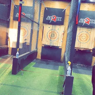 ABQ AX was an absolute blast. You book time for an hours worth of throwing. You can do ax or stars. Reminder: You must wear closed toed shoes. They will charge and rent you shoes if you want to participate. They do serve beer and a few coctails as well. We worked with instructor Diana. She was terrific. Started by teaching us the safety etiquette. PAY ATTENTION!!! She then had us throw one at a time. 5 in our group and 2 in the other. We had 2 stalls and they had 1. Diana then took us individually, showing us where to stand and the proper form whether you were throwing with teo hands or just one. You have to be strong to do a throw one handed. Ladies don't be afraid. From personal experience I can attest that You have it in YOU!!! After we threw for 10 minutes she came back and taught us a game which required scoring 51 points for a win. Bullseye is 5 points, next ring out is 3 then 1. There are stars above the target left and right that count 7 when hit. The next game had us start with outside ring and going across from left to right and then back again. You had to put the ax in the 1st section before proceeding to the ring to the right, then bullseye, then next ring to the right...you get the idea. You book an hour. It goes fast. It is fun. We will all do again. Give it a try!