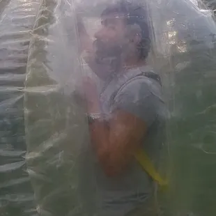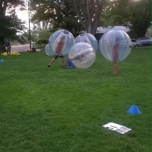 We had ABQ Bubble Play at a recent Yelp event. Holy crap, this is fun!! I first saw this on the Tonight Show with Jimmy Fallon and wanted to play. Totly worth it!You play 3, 4 or 5 on a team and then it's standard soccer on a smaller field. Run around, knock people over and kick the ball into the goals. A 10 minute game can seriously test your endurance, but if you want to go easier, you can do that too. Make sure you knock people over. That's half the fun!Highly recommended!!