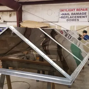 Skylight in shop being prepared for delivery.