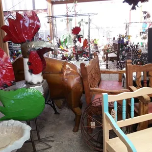 Tons of antique furniture, anything you could be looking for! Some new pieces, new metal art mixed with the old. Staff was helpful and bargaining was no problem. Purchased a lovely "sofa table" (new) that will work nicely as a coffee bar and a couple old metal baskets. Helped us load up with no problem. If we lived here, or even close to here, we would stop in again!
