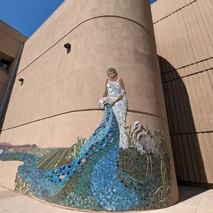 The site has some beautiful art on the outside of the building. There are also some great art pieces inside as well scattered around the building. The indoor space is bright and colorful.