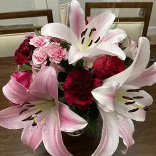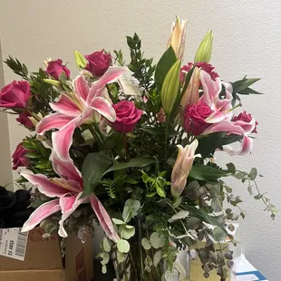Absolutely amazing flowers from Albuquerque Florist. First time using them and I wasn't sure what I wanted to send. Called the flower shop and they suggested the $100 designers choice and these are well worth more. Just stunning. Pics are one week apart and they are just beautiful.