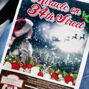 I was in Albuquerque for the holidays with my family and specifically to see "Miracle on 34th Street" at the Albuquerque Little Theatre. To be fair...it was because my dad played Kris Kringle in the show...But don't think I am biased just because my personal Santa was playing Santa in the play! The venue is a good size for a stand-alone, dedicated, community theater. They are also aided by a very generously sized (free) parking lot, especially located sort of near to the Old Town area. There isn't a particularly big foyer/front of house area...but you are here for a show, not necessarily to hang out in the box office area. I heard that they recently completed a bathroom remodel, and I can confirm that they ladies' bathroom is lovely, clean and bright.I will say the only negative the whole visit was the temperature. It was very cold in the theater. And I understand that some venues keep it cooler because stage lights and costumes make it rather warm for the performers. But it was a topic of conversation at intermission and after the show. It was notable, thus I note it.The show was wonderful. I was impressed by the costumes, and the sets were well done. It doesn't seem that they employ any artificial amplification for the actors...whether lavalier or stage-level, but at times that seemed...necessary. As this is the only show I have ever seen here...perhaps it is better with smaller/bigger casts...or different blocking and shows. But it was definitely difficult to hear in some parts.If you find yourself intrigued by anything on their season program, you should ABSOLUTELY should get yourself to a show. My impression is that they produce high quality entertainment and any of y'all who get to live in the general vicinity should go and enjoy it for me!