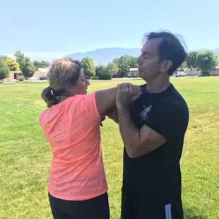 I have been on this crazy journey to find a good place to teach me to fight. ( I secretly have ambitions to be the next Holly Holmes :) What you get here is down and dirty and practical. From my very first class I got a workout and left with applicable skills, which is extremely hard to do! The first class I took was the Krav Maga. I was a little intimidated at first, being the only one in the class that didn't have some kind of belt, but the other students and Zane, the owner and instructor, made me feel really welcome. Just to be clear, what I am looking for is to be actually able to deploy moves, not just run through drills, and Zane gives you that right from the beginning. We worked on disarming a knife, two person attack, and kicking drills. The other class I have attended is the Women's Self Defense class. This is taught by Michelle, Zane's wife. I think every woman needs to take this class! We learned that pony tail grabs are a common attack point and how to disable someone that attacks in this manner. Repetition makes perfect but what I like is that after one class you have enough grip on the fundamentals that I feel like I could deploy some version of it. Great place!!