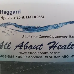 Bill Haggard has over 20 years experience as a certified Colon Hydro therapist in New Mexico. All About Health has been a central part in my healing journey. I have been a client for several years and my experience has been a rating of 10 stars and I recommend All About Health without any reservation. Finally I wish to thank Bill and his amazing staff for the compassion and professionalism they have always shown towards me.