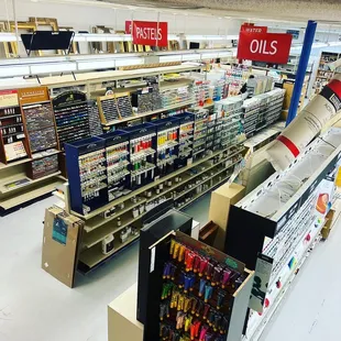 Very pricey and a lot out of stock. Service was nice. They must have had a sale earlier because almost all the Acrylic paints were gone. Found not find white gesso either. Nor Titanium White Acrylic paint. Store nicely laid out in sections. Needs more art books