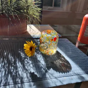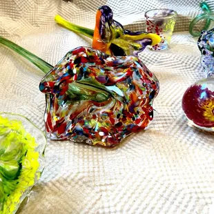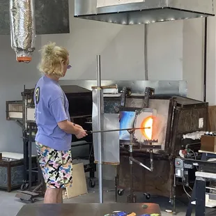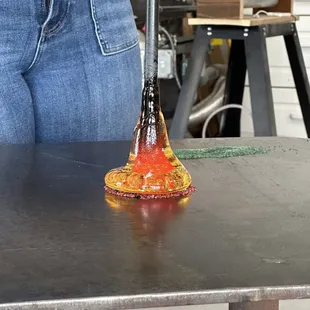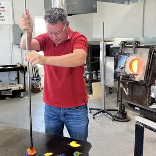 it seems like something you would do once for a special occasion, but we had so much fun we plan to go back soon and make some more things.We were in town last week and I wanted to do something Special with my daughter. I had heard about this place somewhere so I looked into it and decided it might be just that special something.We made reservations about a week out and came on in at the appointed time. John was there and introduced us to instructor(sadly I cant recall his name but he was really great).after some introductory things, like the rules, safety and how to proceed through the steps, we were off!My daughter was so great and going through all the steps to roll the glass, add glass colors and later sitting and pulling the glass into shape. I took my turn and between us we may some flowers and I got to make a paper weight that was so much more than just a weight. I already have it proudly sitting in perfect spot on a living room shelf. It is something special to bring a partner or other special person, but you may just want to go with a friend and see what creativity can be put into a glass creation.