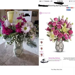 I felt horrible for writing a bad review because complaining doesn't come natural to me, so I felt I needed to provide an updated picture of the flowers because the flowers themselves really are beautiful. I still feel like it isn't what I paid for and the flower arrangement itself was a little sloppy and not up to a "premium" par, but after my emotions calmed down, I didn't think it was fair to give this business a 1 star as I originally did. I'd like to provide a picture of the final product so that future customers can form their own opinion! If I ever decided to use this business again, it will be in person, not through a 3rd party vendor.