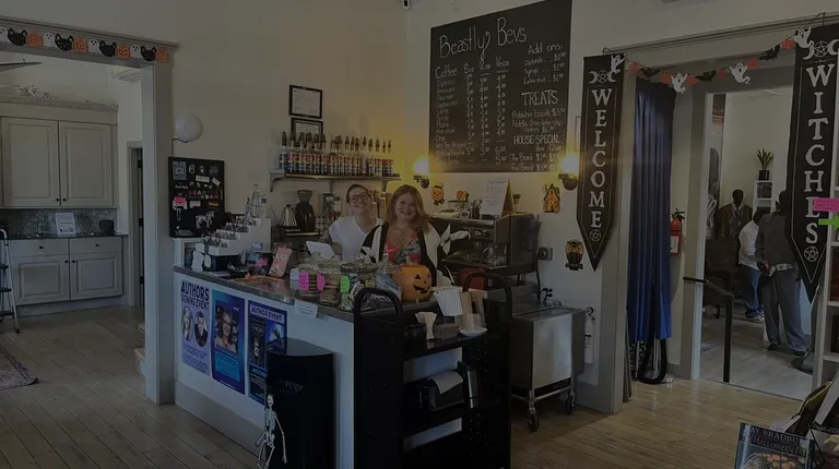 Super cozy and peaceful spot and a must for Game of Thrones fans. It's owned by George R. R. Martin and just opened recently. All of the books they carry (from Martin and other favorite authors) are personally signed. There's several tables where you can sit and chat or read and a small coffee bar in the lobby. They have tons of GOT gifts and merch and host events with local authors.