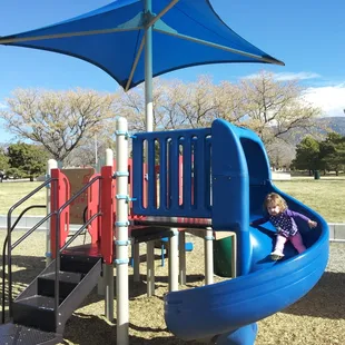 The Good: If Washington Middle School Park had a righteous, punk rock uncle, Bianchetti would be that park. It's a split personality of old school climb 'n slide alongside a Dali dreamscape of ropes, rings and trippy things. Woodchips. Two big kid swings and one bucket (limited radius). The green is expansive, with plenty of room for soccer or flag football, trees line the perimeter. Basketball, half-court (high five!). Lots of trash cans, benches and areas to relax while the monkeys go ape... wild.The Bad: Yet another ABQ park with no shade, making this place off-limits during the hot summer hours of the day, which is essentially three months of the year. Shade is such an important investment, people! Visit any shade-less city park that's 5+ years of age and you'll find that our brutal rays absolutely punish the equipment, melting and fading the plastic. Anybody understand the logic of metal materials on these grounds? Me either. The upfront cost of installing some shade sails atop these areas might initially hurt, but they've gotta pay off in the long run. They certainly ease my concerns about skin cancer. The Verdict: I'll get off my soapbox, it's nearly impossible to find a shaded park in the 505. This park is gorgeous. It's definitely better for the elder set, toddlers won't find much to do here, but who cares. Brilliant execution.