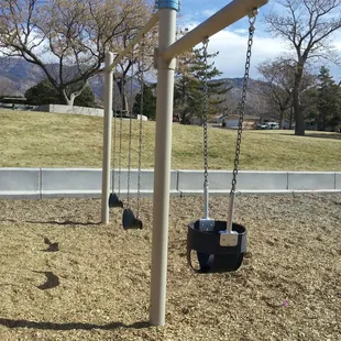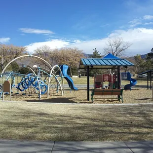 An excellent neighborhood park with mature trees that provide welcome shade, well-maintained grass, and a lovely playground that has some interesting climbing elements.There is not a dedicated parking lot so I parked on the street next to the playground. I did not see any restroom facilities either, so I'll keep that in mind next time I plan an afternoon there with the kids. It was clean and in good repair (the playground equipment looked relatively new) and there were lots of kids there enjoying the swings and climbing web and jungle gym. Some mature trees on the west side of the park shaded part of the playground and there was a small canopy over one of the pieces of equipment but most of it was in the sun in the late afternoon.Will definitely be back!