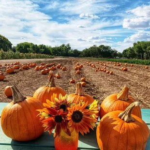 Very cute and friendly! This place is a little out of the way in a nice neighborhood big area with sunflowers and pumpkins to walk through. As soon as you enter the gate you are greeted with options to purchase like salsa, fresh honey, apples, watermelons, etc. You can also hand pick sunflowers from the field and purchase a vase for them. We did the 5 flower bouquet for 15$ and picked out some pumpkins. They had many options from mini to gigantic! They also have many extra spots for photos like chairs sofas cars and tractors! Great price and experience.