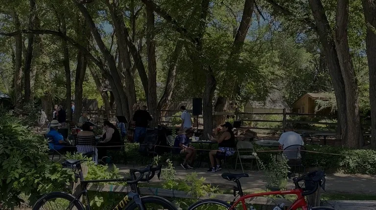Bike In Coffee at Old Time Farm is the first bicycle -focused coffee hangout on a farm in Albuquerque. Under the trees, on the deck, or in a flower garden, one can relax, sip coffee, spoon delicious homemade soup, savor both sweet or savory crepes, plus other delicacies all while reading your favorite book, tossing horseshoes, or listening to live music.
