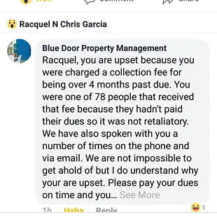 Own a condo that is managed by this terrible company. MY condo has a water leak from the main water line. We found the leak on Friday , called Blue Door, they would not come out to fix the leak until today Tuesday. I sent them pictures of the leak. I wait for the plumber today, he arrives , is here for 20 minutes and can not fix the leak. There has to be a water shut off, yup yes I knew that. A professional manager of a property would have had it set up for water shut off and a repair if needed today. Now I wait another 24 hours. What a joke.... If you send a 24 notice and do NOT need to turn the water off , no problem, send an other email saying we did not turn off the water...if you need to turn off the water, guess what ...it is already set up and the damage to my condo is fixed today.6 days for this get fixed. Blue Door. Do a better job.