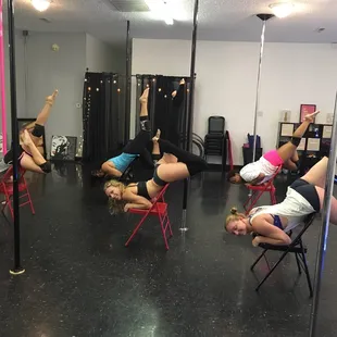OMG I can't even begin to share about how happy I was to not only find a studio here while I visit my Grandmother, but a GREAT studio! Jaymie and Kendra (the only teachers I got to meet) are phenomenal. Very knowledgeable, great pole dancers with a good way of teaching/breaking down things for people of various levels. Jaymie's warmups are super effective and her choreography is on point. I am so excited to have her help me with some choreo for a pole competition. I would say I'm a pole 2 level at this point and I took the intro classes and thought they were SO good. I learned a lot. Kendra was so strong and helpful in getting me to polish my inversions and her warm up was all abs, loved! Please check this place out! I would text the number on the website with questions! I am definitely coming back here again and again---now I have another reason to visit Grandma! : )