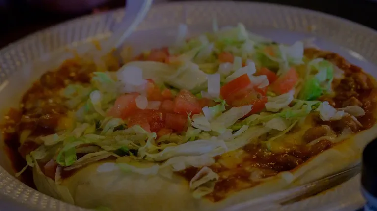 Indian Taco on what I roughly measured as a 10" plate. So about a 6" diameter $10 Indian Taco.
