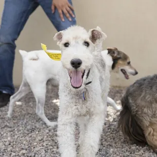 I've never had to board my dogs before so I was very worried about sending my dogs here. We took them for doggie daycare first to see how they would do and when we picked them up they were totally happy - and exhausted! It was great because usually they are bothering us to go outside and play so we enjoyed the peace! I was especially worried about my little dog because he doesn't really like strangers but he did fine. We then boarded our dogs for 2 nights and 3 days in one of their fancy casitas. We received daily photos of the dogs and they seemed to be having a great time. When we picked them up they were happy to see us and totally fine. No injuries, not scared, not dirty or stinky - so I was very relieved! We took them one more time for doggie daycare and they were VERY excited to go back - which is a good sign because if they hated it, they wouldn't be running to get in the place! So all in all, I would definitely bring them back !