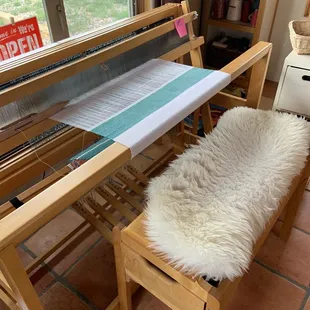 We had a wonderful visit to Rene's alpaca ranch. She took us in to meet the new babies that were just born this month. Then we went into her weaving studio and she showed us how she takes the raw alpaca fiber and makes gorgeous dyed yarns. She both knits and weaves colorful creations. I bought a yummy soft shawl. It's a great place to visit and learn about alpacas and weaving. I believe she also has classes in weaving. Rene is a delight!