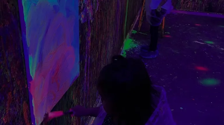 What a fun concept! A large open room where you can actually paint, throw paint, shoot paint, fling paint, drop paint, splatter paint, aim for your canvas, aim for the walls, aim for eachother?!... it's rare to find a space where creativity's only limit is your imagination. And, as an extra option, you can choose to have this creative fun under black lights with glowing paint? Yes please.This cool spot provides you with a poncho, but I recommend wearing shoes and pants that can get messy. The only thing you'll need to clean up is yourself! They took care of everything - set up & clean up. We had a great time. Welcome to the list of creative & fun things to do in Albuquerque, Chatter Paint!They're new and working out the best ways to offer this space, but were really open to feedback and genuinely friendly and wonderful. I recommend just booking it, and going in and letting them walk you through your options. You'll have a blast. We will be back!