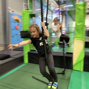 Foam pit and a swing rope.
