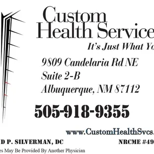 I have been going to Custom Health Services as needed for some time now. Dr. Silverman has helped me a lot. My back is much better. I am very greatful to Dr. Silverman and his staff. I will always recommend him as a great chiropractor that is caring and understanding. He went as far as to recommend a bed for me and since I purchased the mattress he suggested i have slept amazingly. You will never go wrong by going to Custom Health Services.