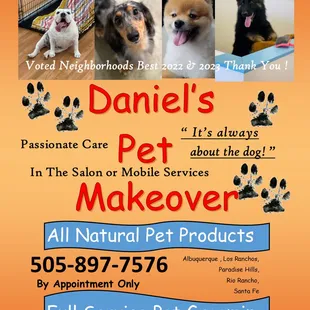 After we moved much further in the Albuquerque from California , I had to find a new groomer for our 2 golden retrievers and very old German Shepherd. After trying a few different local establishments as well as mobile groomers, I finally found THE best one. Daniel is extremely knowledgeable about different breeds very professional ,and therefore knew exactly what to do and whatNOT to do to my dogs! He used top-notch products I don't think my Golden and German have ever looked or felt better. Daniel really knows what he's doing, and his prices are extremely reasonable On top of it all,What a NICE GUY.Thanks recommended Five stars