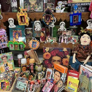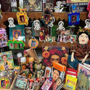 Eclectic? This place is the definition of the word. Need something weird or off the wall stop here? This is definitively a must stop. The store is crowded with shelves containing religious icons, Dia de Los Muertes items, dogs as saints, votive candles with a variety of people - movie characters, politicians and the like. Parody books, games, Freda Kahlo, old toys, old candy and so much more. Ya gotta see it to believe it!