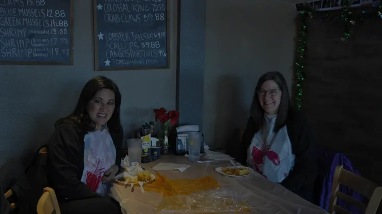 My pictures will come up soon, but my Yelp friend Shelly A. and I had a great lunch at Down N Dirty! I had never been there before. When we got there, there was a big party going on. However, the tables for the party were on the other side of the "L"-shaped eating area, and I hardly could hear them. Maybe they were too busy eating the delicious food?! I shared a bag of food with Shelly which included 2 corn cob-ettes, 2 potatoes, a 1/2 pound shrimp, and 1/2 pound scallops - all in the Down N Dirty mild-plus sauce which had garlic in it! As this was my first boil, we put on our bibs (provided) and dumped out the bag of steamed/cooked seafood and veggies right on the table (covered in plastic). This was a slight error on my part. The juice flows. In the future, I would take out the pieces of food and maybe ask for a bowl to put most of the liquid in so I could dip the seafood in. Live and learn! The juice didn't flow over onto the floor or my lap, but I think asking for a bowl is a good thing next time. Plenty of seafood for the two of us to share! We may have had 4 decent-size scallops and 8 shrimp EACH! The potatoes were a nice size! The sauce was perfect for my taste, but Shelly suggested we try the medium heat next time (which hopefully will be soon). The sauce was wonderful - garlic, heat, and great combo of spices giving its red-orange coloring. I'll be back!