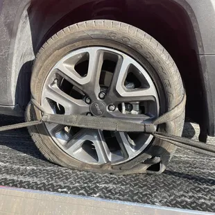 Damaged wheel eyelet. Beware of this company! The straps were too tight when they towed my car. Horrible service.
