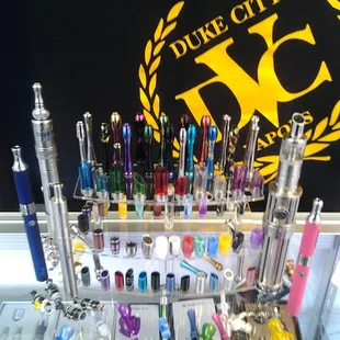 First off, they are now my "go to" place for my ecig goodies because their selection is amazing. Their ecig liquids smell/taste exactly like their namesake: Skittles, Rockstar energy drink, waffles with syrup....lots to choose from!!The staff were awesome, extremely nice and very knowledgeable. If you have a chance to check them out, do it! Lots of tank options, accessories, etc etc etc