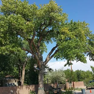 I recommend Robert and his team 100% for any tree issues you have. I think we had them all - huge old trees hanging over our driveway and roof, uncooperative and hostile neighbor, limited access and high winds on the day of ... Robert managed to conquer all of it with innovation, poise, humor and determination. He had to organize special equipment and he even came back to pick up tree limbs that PNM left. The trees look perfect, there was zero debris left and a special shout out to Devon who managed the office and organizational part perfectly.