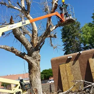 I don't normally write reviews, but I was so impressed by the professional job and attention to safety, I felt compelled to do so. I have been a volunteer with the Friends of the Sandia Mountains as a sawyer for a number of years, so I know what it takes to safely fell a tree. When faced with a bark-beetle killed 55-foot blue spruce in my front yard, I felt I should call in a professional. Robert came out, explained how he would remove the tree without having it fall on my house (a very desired outcome). He and his crew came out with the necessary equipment, climbed and limbed the tree, topped and felled the tree, ground the stump and cleaned up the area in about four hours. An altogether excellent job. I am having him come back and remove an old, ugly Siberian elm which is encroaching on our house as well.