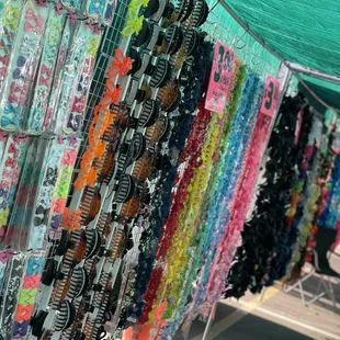 Poppin' tags! This flea market goes on during weekend mornings. You need to go early for the best deals. It's located on the site of the New Mexico Fairgrounds, with ample free parking. This used to be the premier site for Indian jewelry, but now it's mainly old stuff that someone has dragged out of their kids' room, or stuff that they've wholesaled from China. Think fidget spinners, cheap-o knives and nun-chucks, cellphone cases, and knockoff sunglasses. There were very few places actually selling jewelry. There are a few food options, but nothing good or healthy. Most places only take cash, and the ATM machines are located waaay on the other side, next to the horse track. There seemed to be a heavy police presence here- they aren't messing around with the State Police driving around looking for troublemakers. Admission was a dollar!I'm always amazed at the comic book and baseball card sellers out here, showing off their stuff weekend after weekend in the NM sun, where the sunlight bleaches out the colors and makes everything fade much faster than lower elevations. Many of the older items look sun bleached.