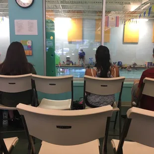We have been coming here for two months. It is a nice and clean facility. It has everything that it advertises and the staff is friendly. However, some of the lessons have been inconsistent. One visit, my daughter did little in the pool besides stand and watch. It might have been an over-site, but given the fact this is a pay for service deal, I would expect more. Various levels of engagement with my four-year-old is really my only complaint. Parents are able to quietly watch through glass without the normal mind numbing echos. The chairs are comfortable, and the view is great. The hours are limited and tend to cater to stay at home parents. Because of this, you see a lot of grandparents which is a great concept. Overall worth the money and kids make surprising progress in short bursts.
