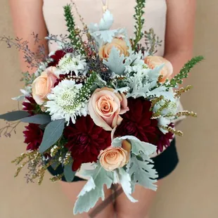 Red roses and hydrangeas.