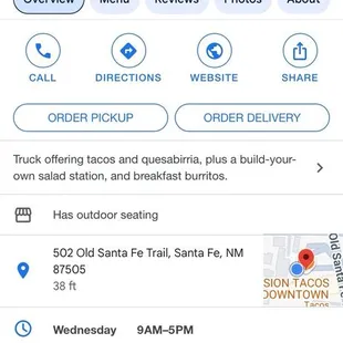 Seeking the authentic tasty taco.Fusion Taco food truck is where to go if you are in the Santa Fe Area. No seating anywhere in the parking lot. Take to go or eat in your car. Have plenty of napkins for the juices that will run down your fingers. The sauces are all delicious. Shredded beef Tacos were off the chart with the crispy shell you there is no room for improvement.. a must try. Service was awesome. Timely. We were there 12 noon on a Thursday . Within 10 minutes we were on our way to eating. They give you a buzzer to let you know when your food is ready. Easy touch-less payment option. There is option for door dash. There are other trucks on the lot if you have someone who is looking for coffee and a donut., Authentic Thai and other Mexican food.