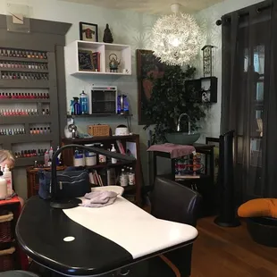 In ABQ for work and was looking for an all natural nail salon. Was able to get an appointment on a Sunday and enjoyed the little bungalow's ambiance while I enjoyed my chamomile tea and the large selection of 10 free polish colors. I went with Zoya!