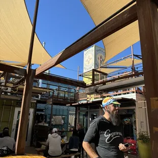 I came here with a group about a week ago. Some people told me that parking was tight and I did find that to be true. Aside from that, this is a nice venue. It is close to I-40. I think the business is here work hard for their customers. Service was good all around. There were several of us who met at Santa Fe brewing got our meals separately and then sat outside and ate.The beers at Santa Fe were very affordable more so than at their other locations I think? No complaints from me. Overall, our group was very satisfied with the offerings and the restaurants and we all agreed we'd like to come back again.