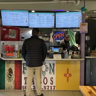 Perfect location for quick bite. Many choices for everyone in the group. We went specifically for Fusion Taco. Happy there is Santa Fe brewing company. Sat outside with nice fans blowing on us. Same quality for Fusion Taco. The bar tender helped us select a beer . Gave a few sample. Social Hall nice light beer . Great lunch at a great price. Nice to sit outside in shade with fans keeping us cool.