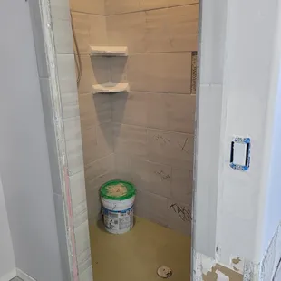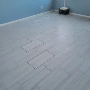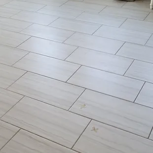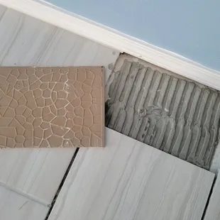 Uneven tiles and grout. Seams are messy and not sized correctly.