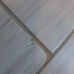 Shoddy time work and grout. Uneven seams. Messy grout