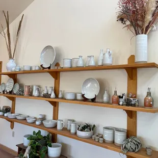 Okay, the pottery is beautiful. And affordable. And there is a great variety of vessels to choose from. But the MOST amazing thing about this local treasure is the way you make your purchase.When you walk in, no one is there. Ever. On purpose. They don't staff the store front -- they TRUST you. Once you have made your selections (one pattern features the most amazing purple, bronze, and sage green on taupe) you write down what you're taking, pay by writing down you method of payment on a sheet (and enclose a check if that's your choice) and put it all in an envelope in a locked box.I hope I'm not driving some wacko to do something horrible there, because losing this place would mean I couldn't get some truly extraordinary new home or wedding gifts.