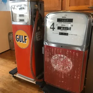 an old gas pump in a restaurant