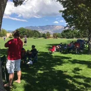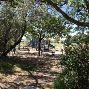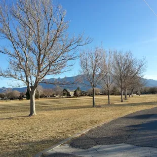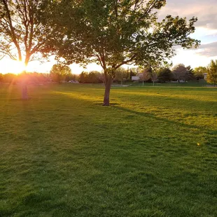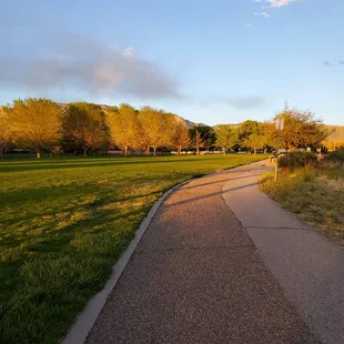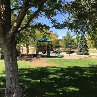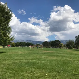 What a great place for kids' soccer games! Not extravagant or filled with exciting invitations to explore. But the grass is thick and luxurious and green, barely a bald patch. It's close to the foot of the mountains, so the view is spectacular. There are modest play structures down the way for the younger kids of a variety of ages, and shady seating for moms and dads, both surrounding the soccer fields and next to the playground. A bike path skirts the park, probably connecting to one of the larger city paths (love this town for long bike paths).Great place for frisbee, kites, any number of athletics (soccer, baseball..) or a leisurely repose in the shady grass.Just pee before you get here; there appears to be no toilets.