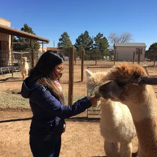 Feeding the alpacas