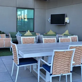 I stay in a LOT of Homewood Suites and Home2Suites, a dozen different ones a year, 100+ nights. This one is full of contradictions. It is 9:41AM on a Friday, when I'm standing RIGHT NEXT to the Hours sign which says open til 10:00AM, the waitress turns me away saying they're closed. Great final impression for your Diamond Member. The good: Dominica in the bar was amazing--great bartender and server. Friendly, has good suggestions, attentive to everyone even when the place was packed. after the first day I made a point of going in there every day if I saw her working. Suggested a great flight of tequila. A solid bartender, my favorite thing about this stay. Also good: the street tacos (especially at happy hour: $2.22 each). Tasty, meaty, flavorful. Great complex flavor salsas. Also good: the Caesar salad. Too many places screw up this simple dish. This one's perfect: flakes of Parmesan, not drenched in dressing, good combo of fishy/tangy dressing and salty croutons. That dressing may not be house-made but they do the whole thing right from the assembly to an ice-cold bowl. The bad: (the above mentioned bullshit when they don't keep their hours as posted). Also bad: the tomato basil bisque. Just a notch above Campbell's. In fact: I'd prefer Campbell's. Not hot. No basil flavor WHATSOEVER in it that I could see, taste or smell. The odd clumps of cheese in it doesn't work and the cold drizzle of sour cream in an already lukewarm soup didn't help. (Former chef. Nothing about this made me think tomato basil bisque). Also bad: no ATM. ("Go out to the barbershop and use theirs" was the recommendation. Pass.)Room was great and the hotel is nice, great photo art everywhere and I loved the QR codes on every piece to get info. Even in the rooms, beautiful art, not the typical hotel stuff. The area outside is kinda rough (after I got turned away from the hotel restaurant during open hours I walked 700 feet to La Zenita (AMAZING tamales) and it's a gauntlet of homeless). Uber anywhere you're going after dark, and even during the day be careful.