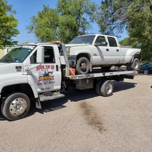 We lost an entire wheel off our boat trailer outside of Bernalillo, Memorial Day weekend . We called countless tow companies and either they didn't have a truck that could handle it, or it would be at least a 5 hour wait. Moe answered right away and said he's be right there. He was there in about an hour and got our boat and trailer home!!! If not for Hook Em Up Towing who knows how we'd have gotten it home. 11 out of 5 Stars!!