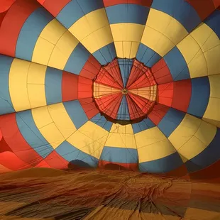 Capt. Nick inspecting his balloon (Morning Splendor) from the inside prior to takeoff.